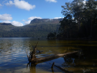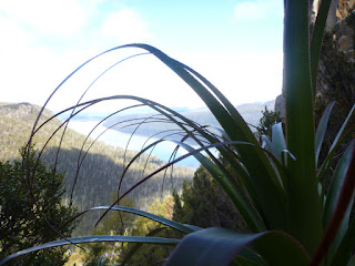 A rare break in the foliage offers a view up Lake St Clair. Downside is there was a view because I’d come out on a ledge which needed to be navigated around. |