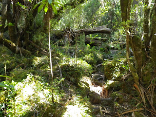 It was kind of special getting down to the other end of the lake and wondering how many other people would ever have made it this far. There was a lovely copse of flowering leatherwoods down the far end, and I got to admire the burnt stags of trees from a long gone bushfire as I filled my waterbottle from an inflowing stream and drank the cold, clear water.