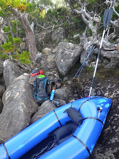 Bluebird preparing to sail … all packed up in a 40L backpack (including paddles) |