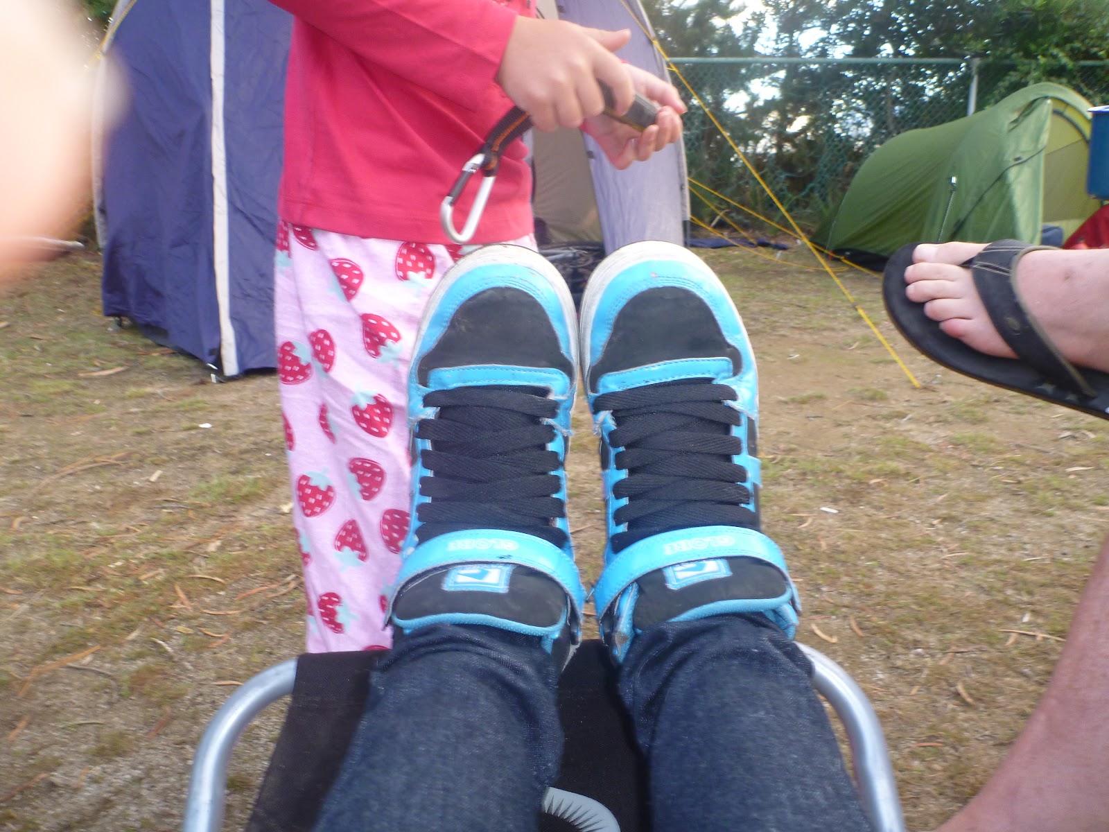 finger on lens, feet up, tight jeans, cool shoes … perfect. |
