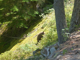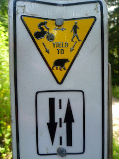 I found it kind of amusing at the time, sure in the knowledge that there would be no bears in this busy park, but then 30 or 40 minutes later I came around a corner and was lucky enough to do look up just in time to see a small bear about 30 metres down the track right in front of me.