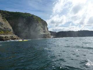 There are many beautiful cliff and beach sections along this stretch of coast, though Mike in his sea kayak was the only one of us who could really get in close to shore to enjoy it given the swells and hidden rocks just below the surface.
