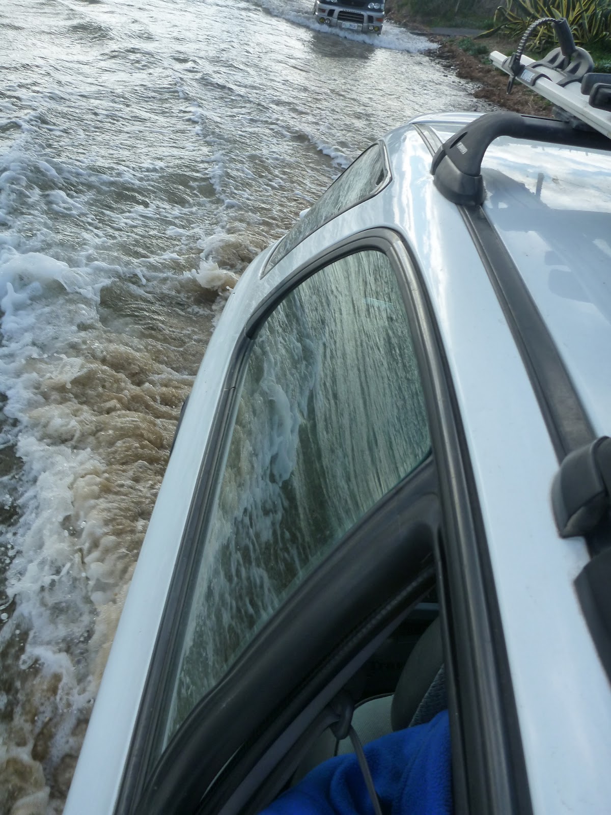 My only consolation was that Stephan and I had to come back through it again (twice) to pick up our boats once we’d dropped Mike back off at the start of the paddle, so his car got a bit salty as well. Apparently the water came up to the top of my tyres … and I don’t think Subaru’s are built for that.