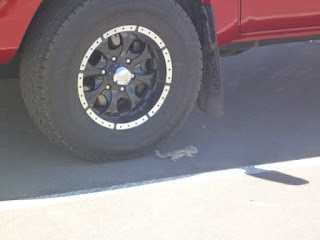 Yep, it was an amazing ride, and one I will always cherish, though to be honest I was cooked, baked and fried well before I got back, and by the time I pulled into the carpark … well I felt like this squirrel … I’d do anything for some shade, even if it means lying under a car tyre.