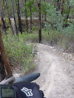 I planned a short ride: pretty much straight up the gully and then testing two pieces of single track: the top most piece of track which runs down the southern side of the gully for about 450 metres, and the switchbacks on the northern side of the gully (about half way up the gully) which I wanted to try and ride up.
