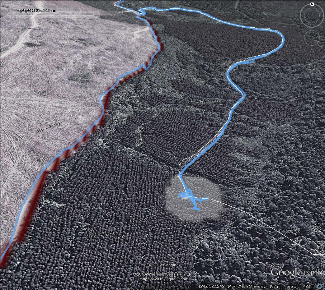 If you zoom in on the image above, you can see me searching around trying to find the trailhead, and trust me there was no track there to be followed unless you wanted to go bush bashing big time.