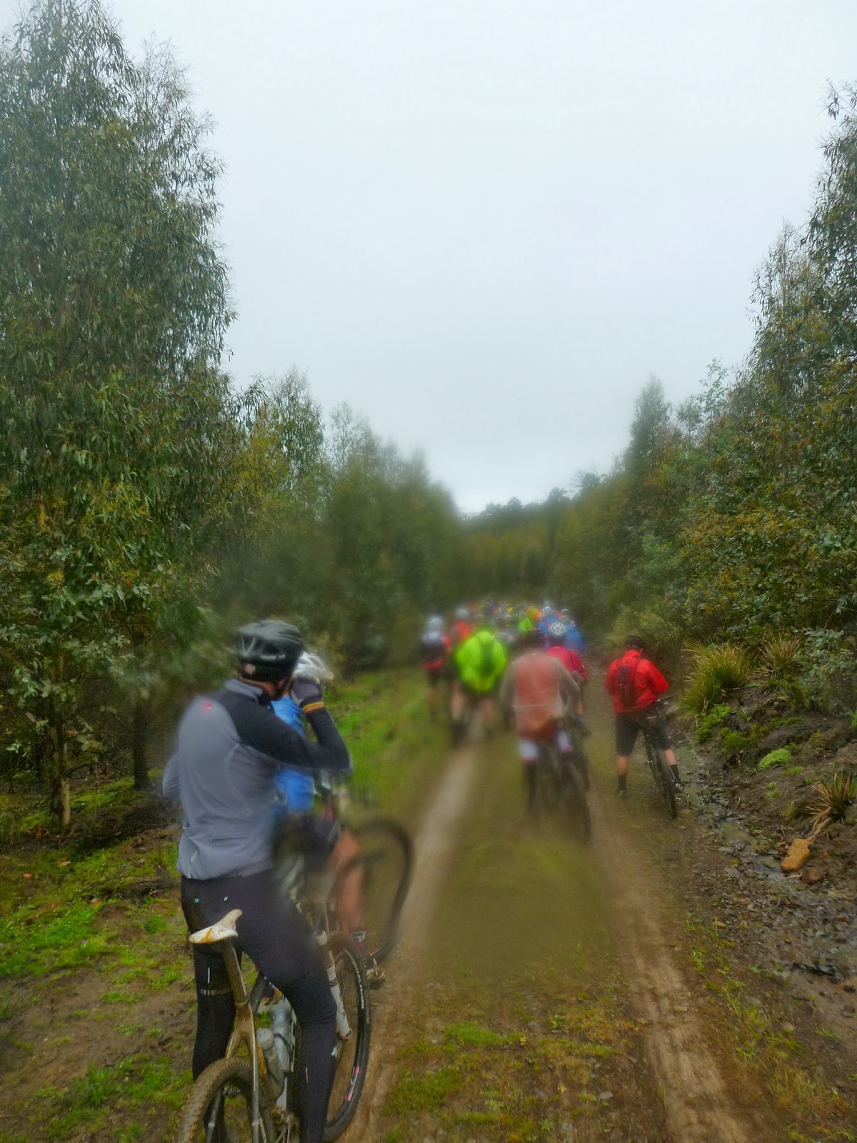 This is what happens when you ride behind 250 other riders on a wet muddy track …