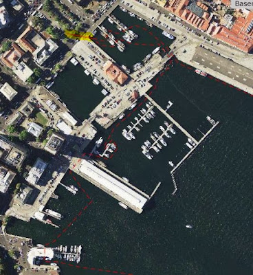 Paddling under Elizabeth Street Pier. More sweep strokes needed. |