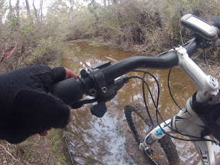 The track on the other side of the spillway can be a little confusing, but mostly because of tracks leading off to campsites, or around muddy sections, but just so long as you choose the track that looks like it is going around the lake, pretty soon you’ll find yourself on the only track left standing and riding happily along.