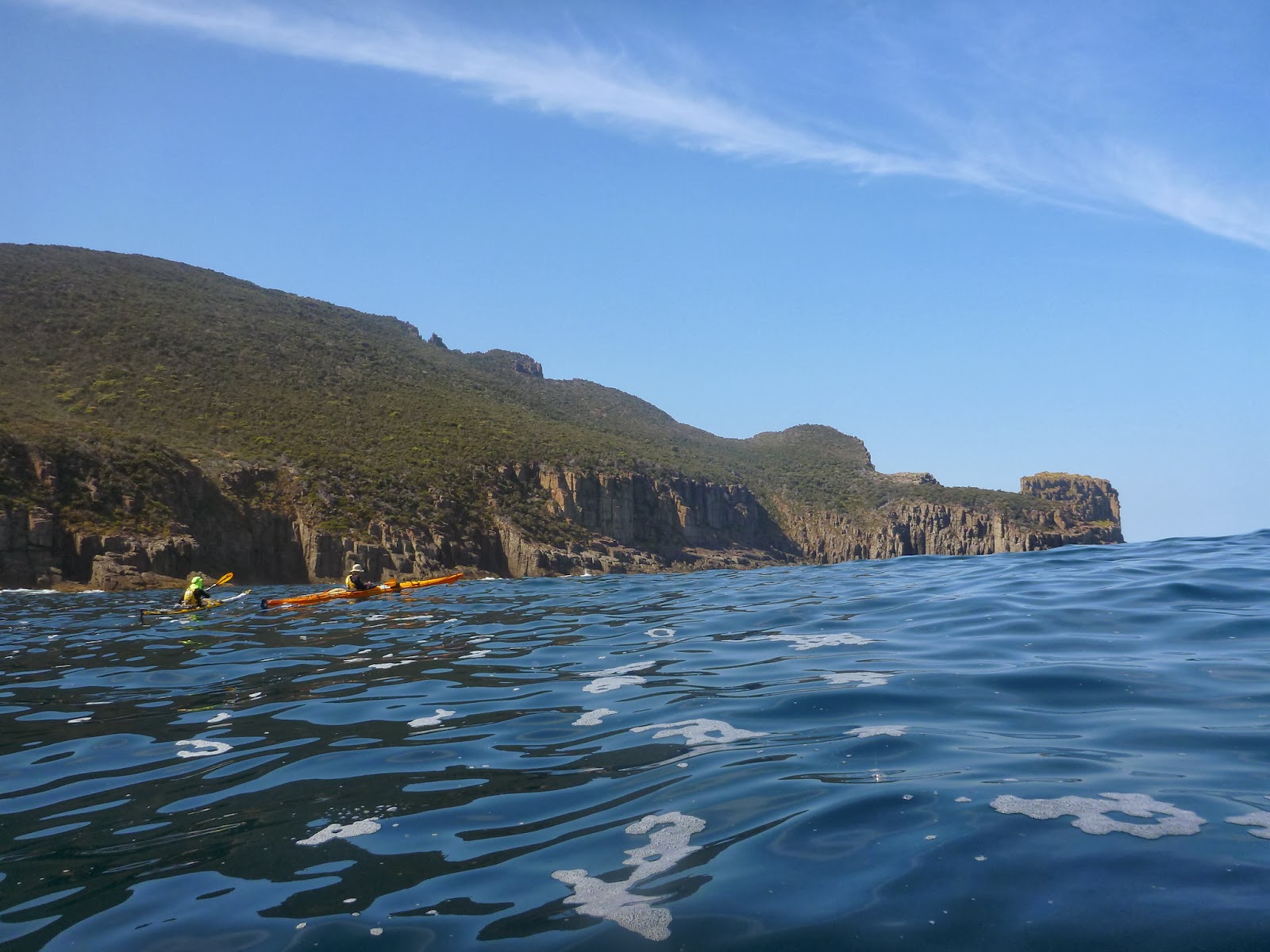 After lunch we continued on around the Island and again the extra bit of swell put me on blue alert as we paddled down to the the far southern point (The Monkeys) of Tasman Island. Then things changed and not for the better.
