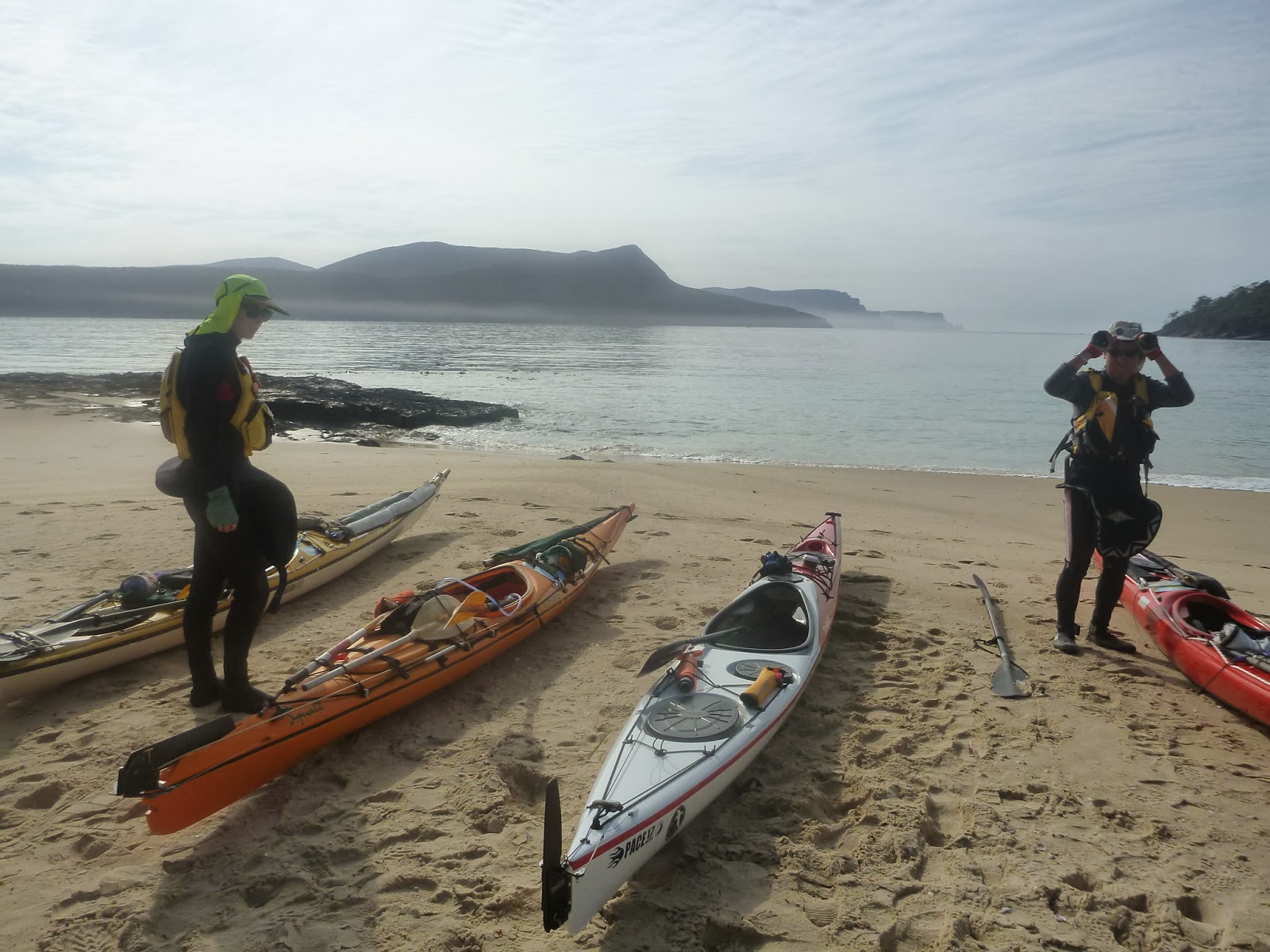 NOTE: This was a Tasmanian Sea Canoeing Club “proficient” graded trip. We had three very experienced paddlers (plus me who is trying to get up from “Strong Basic Skills” to “proficient”) on this trip. We had spent a lot of time examining and discussing weather conditions and routes prior to the trip, we had full safety gear (VHF radios, EPIRBs, PLBs, smoke and laser flares, phones, paddle floats, spare paddles, etc. etc.) we had a well structured float plan in place and a spot tracker sending off our location every 10 minutes, we all could roll, self and team rescue … hopefully you get the idea. Don’t read this and think “I could do that – or else you’ll end up feeling like I did out there – out of your depth).