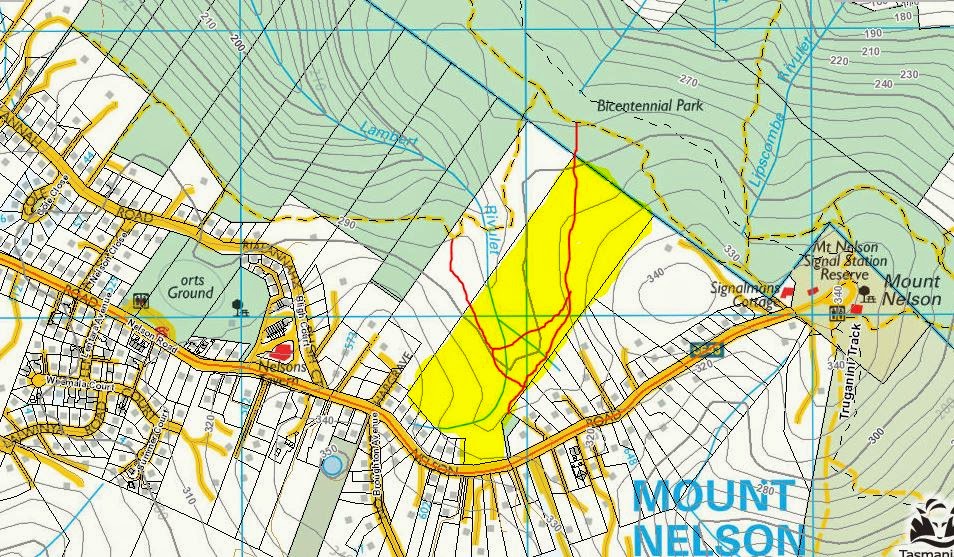 … And I’ll lose them to nearly the same circumstances … another piece of bushland that adjoins crown land is about to have a new house and helipad (Yes, Mt Nelson is about to get its first helicopter commuter) built on it which, while great for the owner, will mean that all of us who have lived up this way for years and who have become used to walking our dogs, or using this shortcut to the trails behind our houses … well we’re about to lose that access.