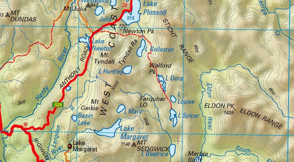 I went out to Lake Spicer which (from a google earth perspective) is an intriguing little lake nestled up in the mountains just north of Queenstown on the West Coast. I found it intriguing because on google earth you can see a 13km ribbon of track winding out from the road near Lake Plimsoll to Lake Spicer where it just ends…