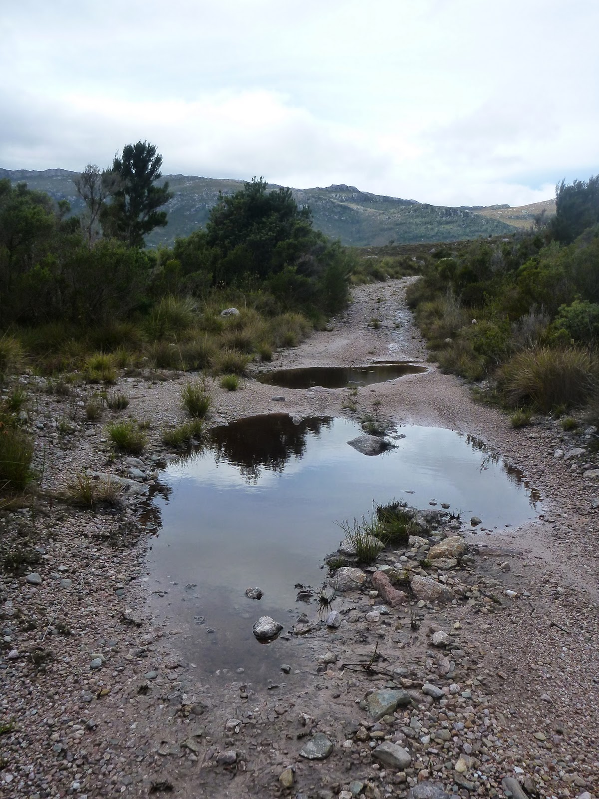 If you’re wondering, the track is open and clear the whole way (there had been recent 4WD traffic down it), but it isn’t being well maintained and so all the small gravel has been washed away and there’s lots of deep puddles and river crossings.