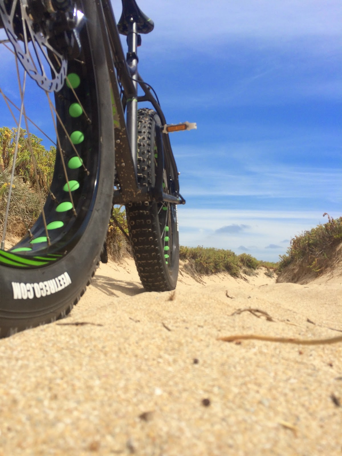 I learnt that when the tide is coming in, the sand gets sticky and heavy and is very, very hard to ride through. Even on a fatbike (damn again).