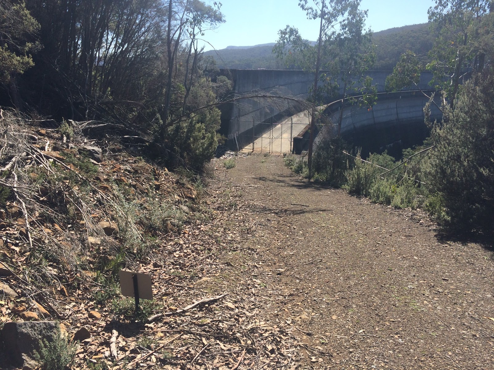My Plan for this trip had been that I’d simply cross over the top of the dam on foot, as I recall having read bushwalking stories of people who had done this in the past, but it was very clear from the security put in place that this was not a legal or desired thing to do …