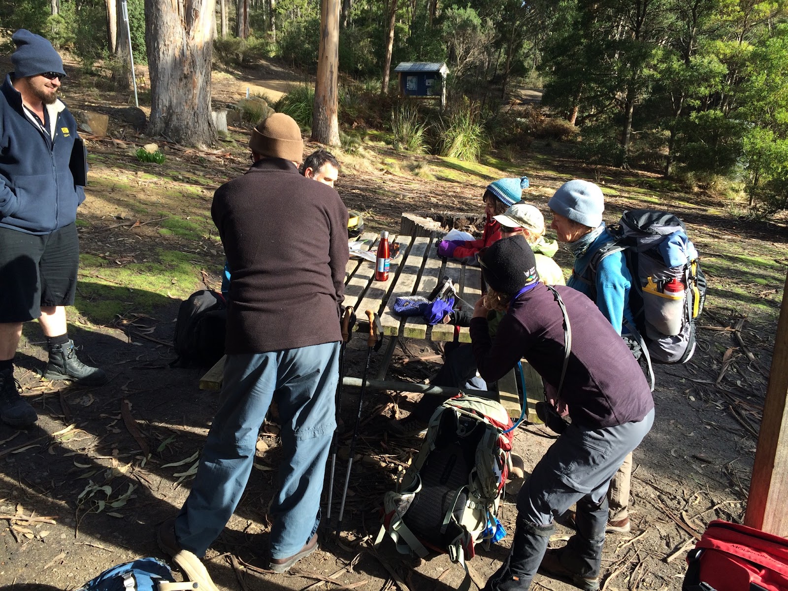 It was nice to get up when we felt like it and watch the other walkers (including Bec and Anthony) head off into the cold and rainy morning as we had a lazy breakfast and several cups of coffee (walkers who wanted to catch the 2pm bus and visit Cape Raoul were advised to leave by 8am at the very latest).