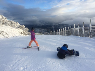So our skiing101 classes were a miserable failure, and  Kim switched to snowboarding for the afternoon … wherein she carried her board up the hill a bit, fell over soon after standing up (as you do) almost wrenching her knee and that was pretty close to the end of Kim’s time on the snow as she became concerned about destroying her knee in the run up to the Auckland Marathon later this year.