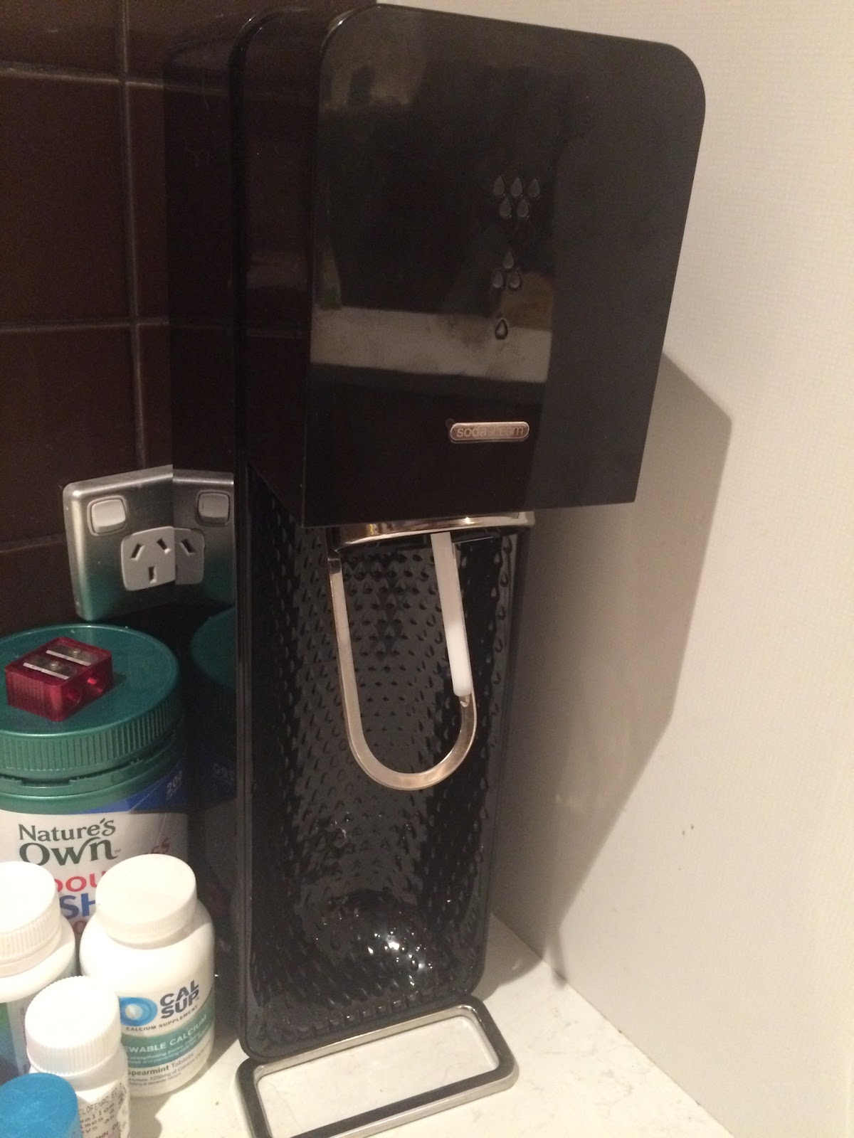There are some catches: I’ve of course had to go out and buy a spare gas canister ($49), and two extra bottles ($15) and although we don’t usually flavour the water, we’ve bought a few flavours ($6-$8 each) … just to try, so you can be enticed in by the entry price and then find yourself paying a lot more, but, I’m told that a refill gas cylinder costs $22 and makes about 60 litres of water, so that’s about 37 cents per litre … almost half the cost of what we were buying from Woolworths and more importantly we can say good bye to all that plastic waste …