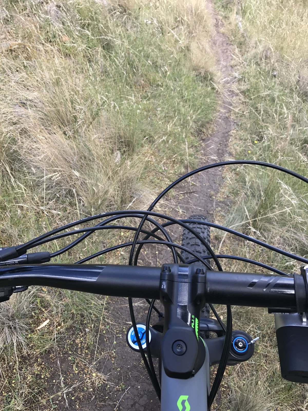 I also found the handlebars a bit too wide for my liking (specifically there are a few tight pinches on the Wallaby track track between trees which I can slip through on the Trance and even on my Trek Evo 8 … but which I couldn’t make it through with the Scott).
