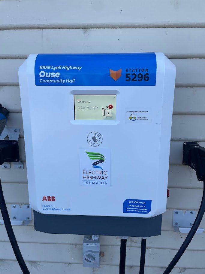 I was soon back at Ouse, and got my first shock for the day .. there was another car plugged into the only CCS charger. Fortunately it was a friendly couple who had borrowed a friends EV for a drive around Tassie and we had a good chat about the challenges of using an EV while they finished getting enough charge in their car to get them to Derwent park (about a 25 minute wait for me).
