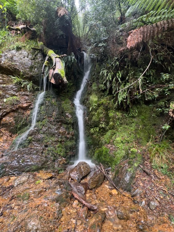 Rawlinson’s Falls was also pretty easy to find (though I admit to a few false creek crossing where I peered down to see if there was a waterfall below) but after pulling up and parking the bike next to the track, I did scratch my head and wander back and forth a bit trying to figure out the best way down from the track as all ways looked very steep.