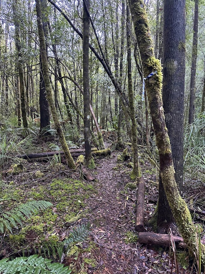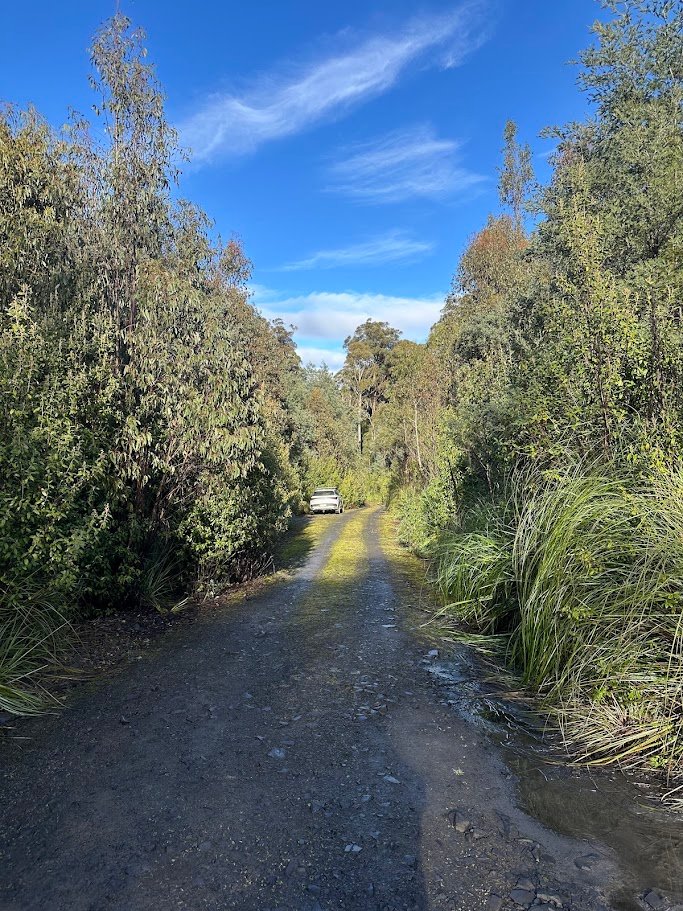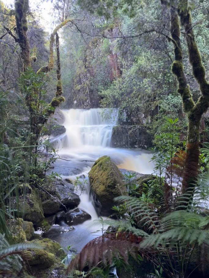 Robbie’s Falls is pretty easy to find it you’ve got it programmed into your phone, but the general gist is drive out to Judbury and from the junction in Judbury that takes you towards Glen Huon, keep going along Lonnavale Road for about 6.5kms, keep going straight ahead on Denison Road (don’t turn right down Lonnavale Road) at just past 11kms, you turn right to stay on Denison Road until about 16.5kms where you’ll come to a sort of four way junction and you turn onto McDougalls Road (unsigned) and follow that for another 1,1km. You’ll cross a pretty big creek on the way and then see a small road down to your right. Drive down here a couple of hundred metres and you’ll find a little pull off on the right where a couple of cars can park just before the end of the road.